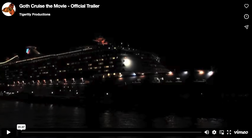 We’d like to thank the director, Jeanie Finlay, (and TigerLily Films) for choosing to use The Original GothCruise and our friends as inspiration for the beautiful movie she created. We can think of no better way to show what the true enduring spirit of this thing called Goth (and our humble GothCruise) is all about. For more information about the movie and to watch it on Vimeo, go here: http://www.tigerlilyproductions.com/gothcruise